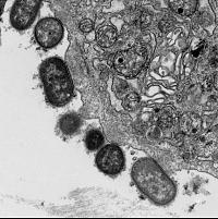 Citrobacter rodentium adherido al epitelio intestinal